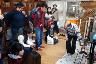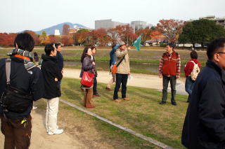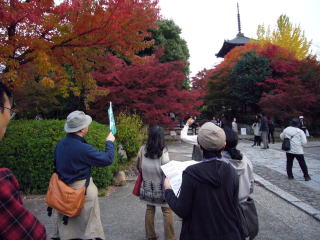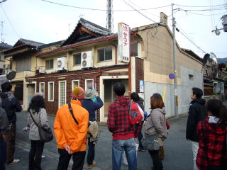 | 天候にも恵まれ、無事に終了いたしました。 ご参加くださったみなさま、桜湯さん、ありがとうございました。 ![]() (左)まずは営業前の桜湯さんへ (右)ご主人に釜場の話などをお聞きしてから内部見学、そして荷物を預け・・・ ![]() (左)鴨川の河原を歩いて出発です (右)川の中の飛び石をピョンピョン越えて・・・ ![]() (左)京都大学の時計台を眺め (右)吉田神社へ到着 ![]() (左)どんぴしゃの紅葉真っ盛り! (右)真如堂の三重塔 ![]() (左)紅葉の下であま酒を飲んだりしてちょっと休憩 (右)歴史上の有名人が眠る墓地にはへんな地蔵・仏像がいっぱい ![]() (左)途中、常盤湯を経由して (右)八ツ橋の総本家でちょっと買い物 ![]() (左)本家と総本家を食べ比べたら (右)夕暮れの桜湯に戻り、ぬくぬくのお湯に浸かってシアワセ~! |